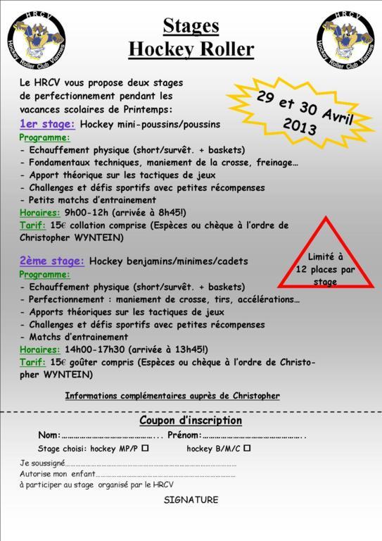 Lundi 29 avril et Mardi 30 avril : Le matin de 9h à 12h : ouvert exclusivement aux mini et poussins!